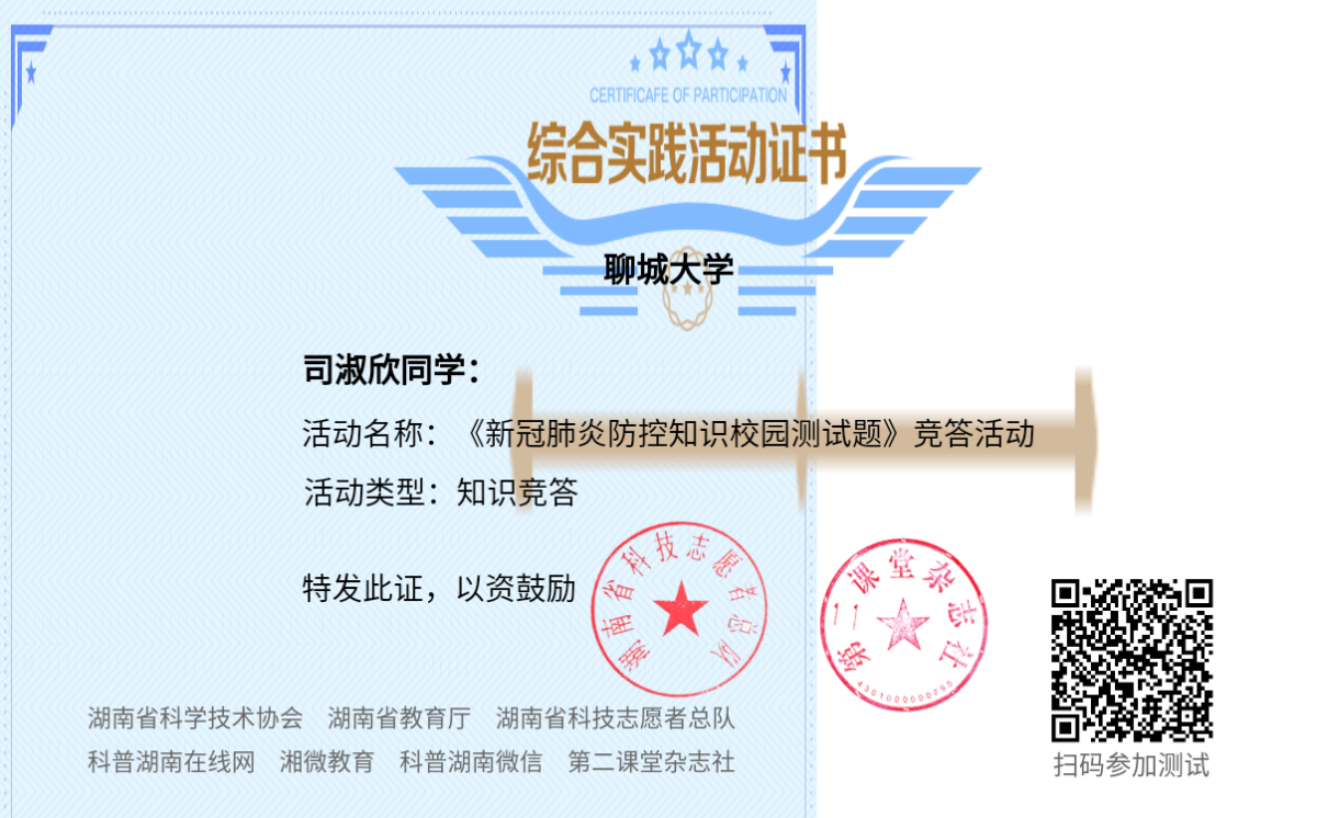 王田田在青年化学社”最强大脑“化学知识竞赛获得一等奖