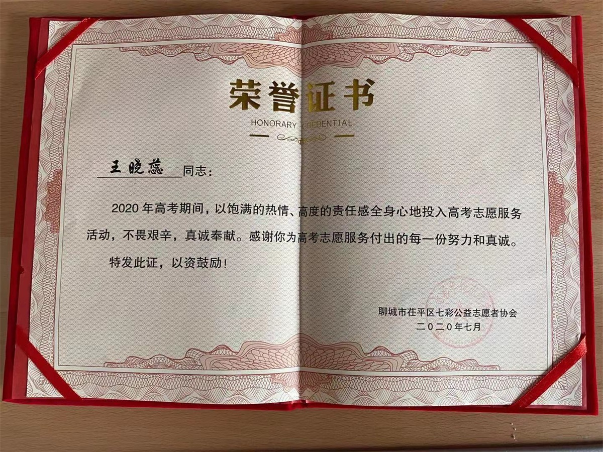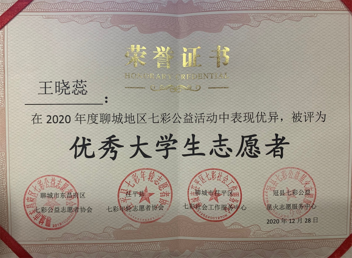 王晓蕊,2020年度聊城地区七彩公益活动“优秀老员工志愿者”
