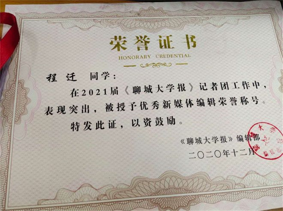杨璐宁,电视台记者团“校园美食”短视频征集活动二等奖