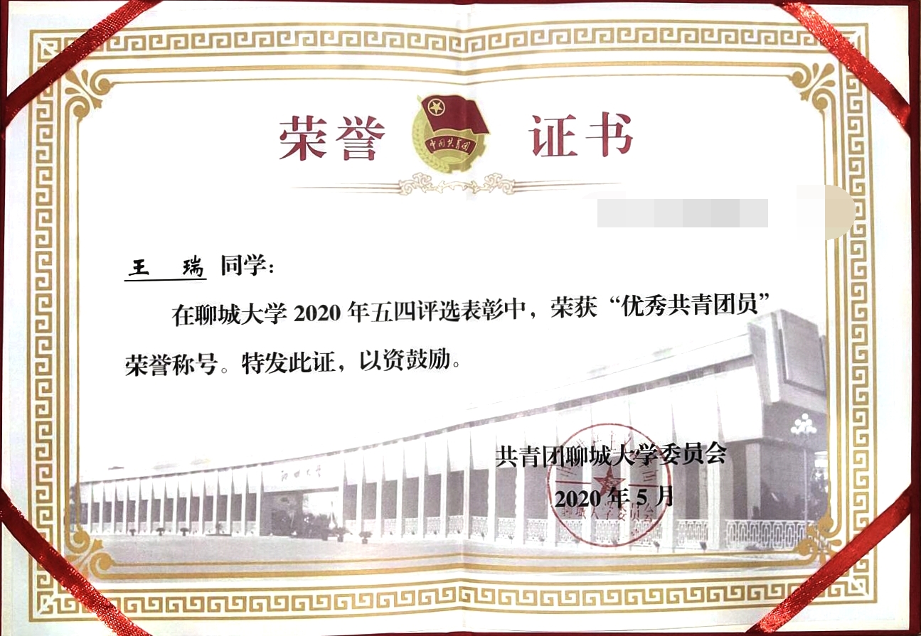 王瑞,w662020年五四评选表彰中“优秀共青团员”