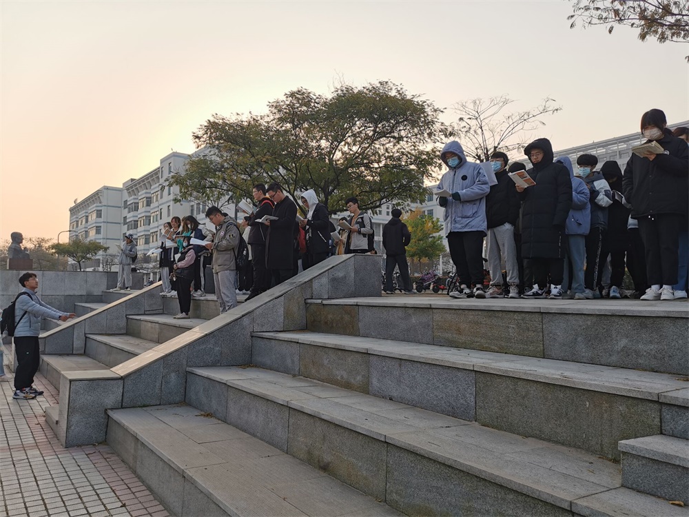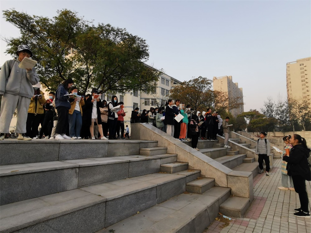 同学们根据专业特点和学习习惯,将专业学习融入早读中,利用早读时间复习英语单词、巩固专业知识,把扎实知识基础放在第一位。晨读点上书声琅琅,同学们激情洋溢,全身心的投入到学习中,洪亮的读书声彰显出同学们昂扬向上、朝气蓬勃的崇学精神。