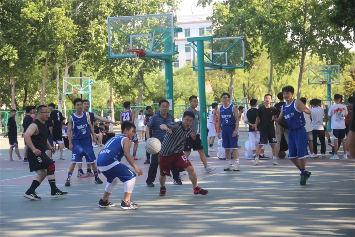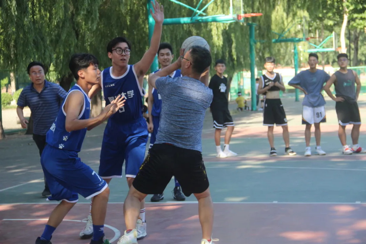 在围观群众高昂的呐喊声中,比赛进入了最终的关键时刻,教师组奋起直追,员工组也严阵以待,孙元国老师以其高超的球技,一人夺得50分,扭转了教师组的局面。最终,随着比赛结束哨音的响起,教师组凭借微弱的优势胜出。比赛结束后,老师和同学们互相击掌鼓励,合影留念,活动在热烈欢腾的气氛中圆满落幕。