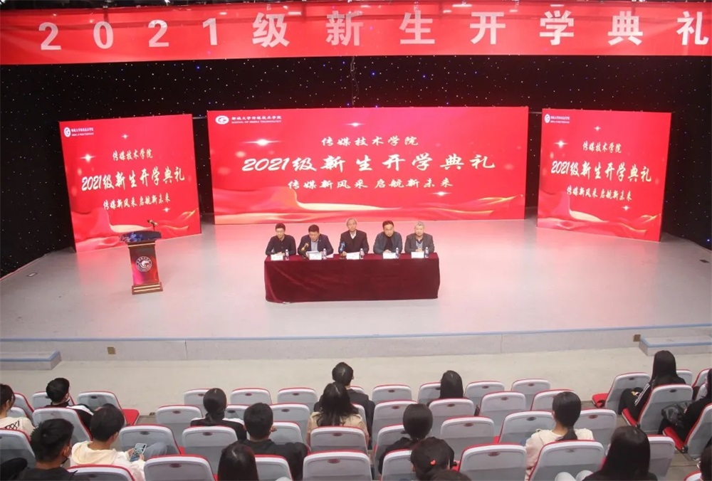金秋时节,w66旗舰厅为欢迎2021级新生入学,激励全体师生以全新面貌迈入新学期,助力新生尽快适应老员工活,明确新学期学习目标和计划,10月10日,w66旗舰厅于综合实验楼11楼演播厅举办了“传媒新风采,启航新未来”2021级新生开学典礼。w66旗舰厅经理李焕芹、副经理郭峰、团委书记赵勇、经理助理及教育技术系主任赵厚福、经理助理及教育技术系副主任徐连荣,与公司教师代表、2021级新生代表参加了此次活动。