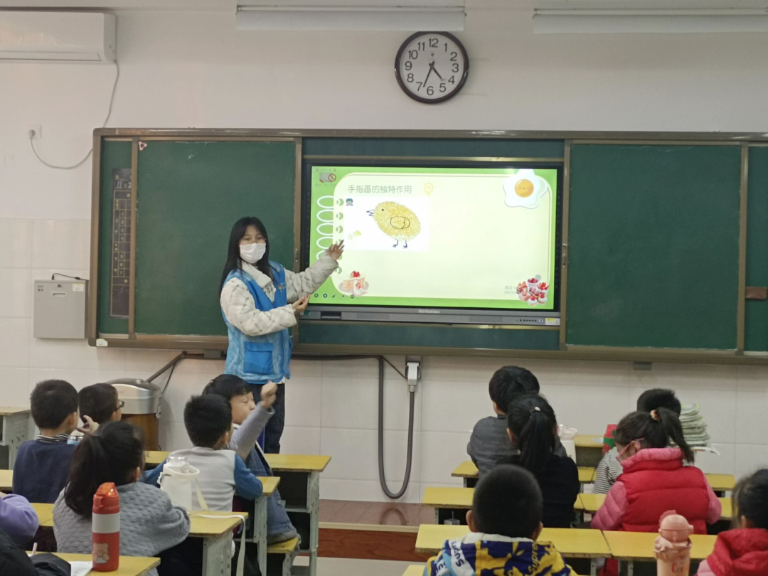 弘扬志愿精神,扬起希望风帆。志愿者们进行了简单的自我介绍后,公益课堂正式开课。结合图文并茂的PPT,志愿者向在场同学详细讲解了手指画的内容和基本操作,以寓教于乐的讲授方式激发同学们对手指画的兴趣,开发想象力和创造能力。同学们跟随志愿者的讲解思路,认真听讲、不断发问,积极地同志愿者们进行交流讨论和问答互动。