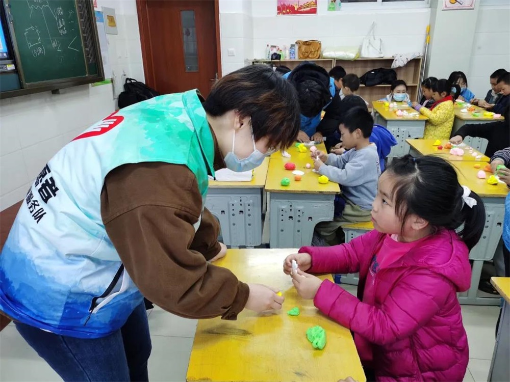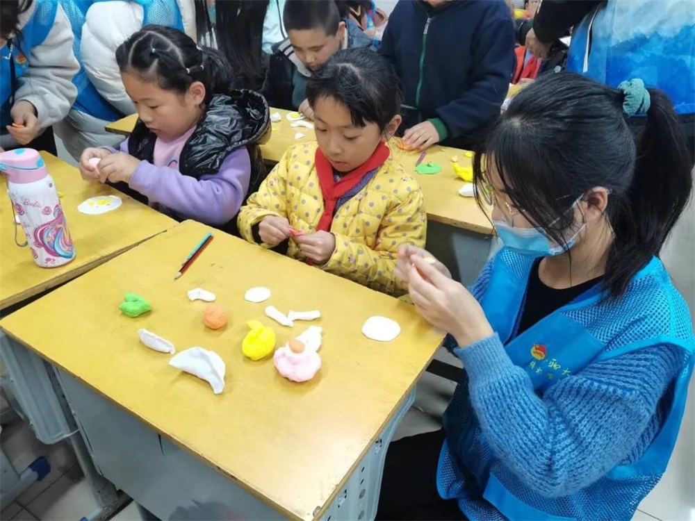 11月11日,“七彩四点半”公益课堂第一讲顺利开讲!w66旗舰厅青年志愿者总队以及光影之翼服务队志愿者一行来到红旗小学延时课课堂,结合立冬节气,带领同学们一起学习节气、习俗知识,制作太空泥手工作品。