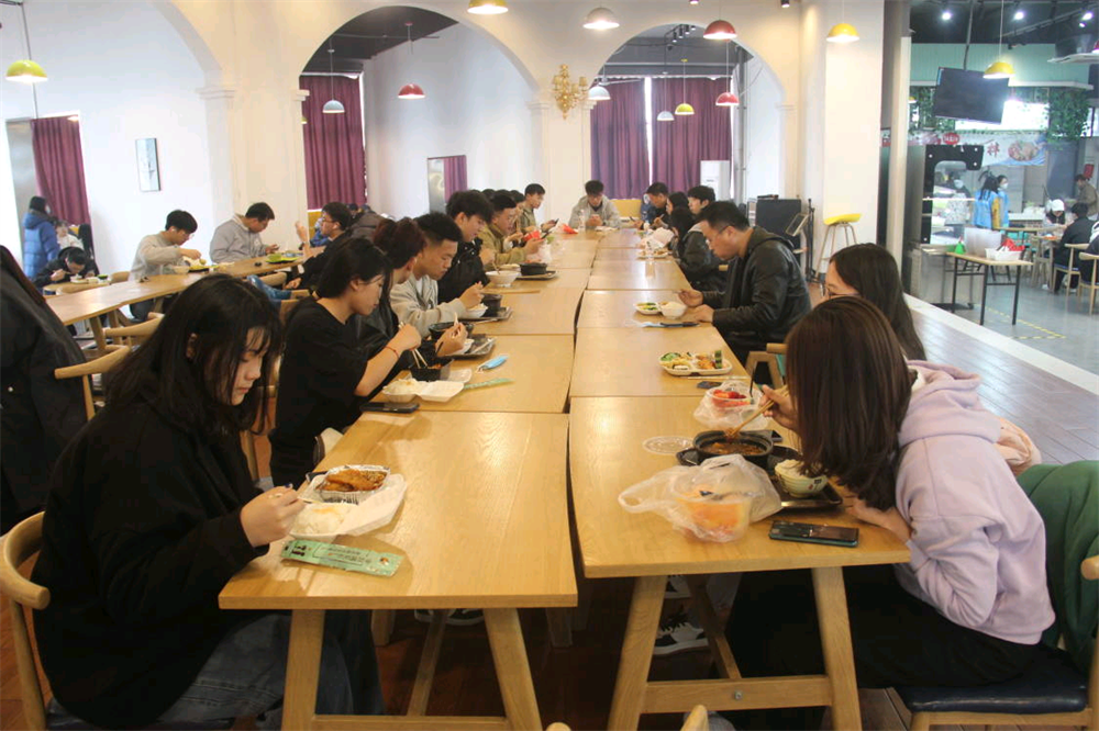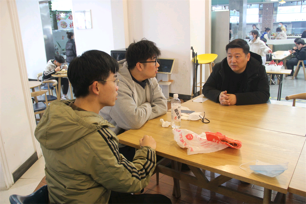 伴随着餐厅悠扬的音乐,沙龙活动正式拉开序幕。本次活动以推动良好的学风建设、开展安全知识教育为主题,围绕学习效果、班风建设、疫情防控、班级建设等方面进行了解。郭峰对于个人责任担当、班级突出问题等作出强调,表示同学们即使在疫情期间也应正视自己班级干部的身份,维系班级整体关系的同时积极为同学们服务,打造良好的班级氛围。赵勇亲切询问了同学们的学习情况和生活必需品等,切实关怀同学们的日常情况,逐一排查生活中的安全隐患,并叮嘱同学们要时刻戴好口罩,注意个人卫生和加强防护意识。对于同学们提出的困惑与问题,孟祥栋、王隽玮在聆听后给予了正确的引导和专业的讲解,告诉同学们不必迷茫,积极进行学习规划,开展实际行动,不要虚度时光。在交流探讨期间,老师与同学们共进午餐,在轻松愉快的氛围中活动落下帷幕。活动结束后,同学们纷纷表示在疫情期间也要认真学习、务实工作,不断锤炼自己,为班级和公司工作贡献一份力量。