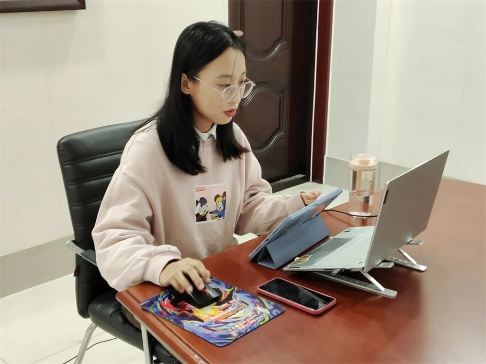 王亚潇通过一则新闻报道的不同评论,向同学们展示绿幕抠像、动作捕捉、面部动作捕捉三类技术干预下的视频创作。同学们积极参与、快速响应,充分发挥网络直播教学优势,远程联动,同美育实践志愿服务团成员实时进行交流互动,答疑解惑。