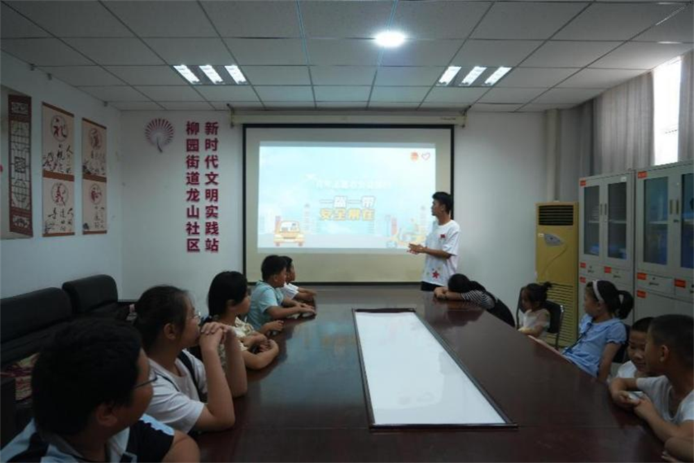 “一盔一带,安全常在”活动中,志愿者通过播放交通事故视频,讲述相关交通案例,让青少年对于交通安全有了一定认知和判断,并强调了安全意识的重要性,特别是小孩子在过马路时,一定要遵守“一停二看三通过”的交通规则,要着重提高防范意识。课堂最后,志愿者为大家展示了各式的交通指示标志,同学们积极互动、热情举手,课堂充满了欢声笑语。