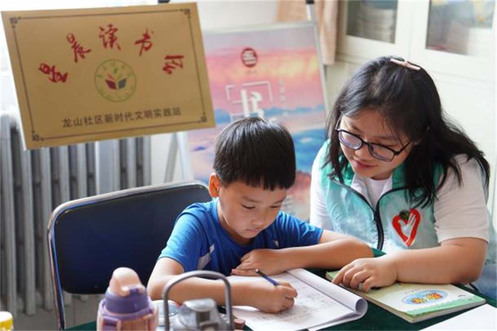 “今天的活动太有意思了,哥哥姐姐给我们辅导完作业后,还组织了有趣的旗帜小课堂,我都开始期待明天的课程啦”,暑期课堂结束后,8岁的张鸿鹤小朋友高兴地与来接他的奶奶分享。