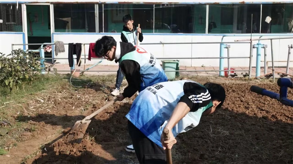 秋日暖阳胜春光,温暖守候情意长。在养老院工作人员的带领和介绍下,志愿者们首先为老人们送上了亲切的祝福,祝愿老人们健康长寿。在简单分组后,队员们各自拿起工具对老人们的居住地进行了细致的打理与清扫。其中,几位队员俯身弯腰手工除草,利用手中的工具进行松土,以确保老人们拥有良好的居住环境。在此过程中,养老院工作人员在一旁指导,队员们汗流浃背、干劲十足,力求以高标准完成自身的志愿服务工作。同时,其他队员们主动帮助老人们剥蒜、摘柿子,体验志愿服务与奉献的乐趣。