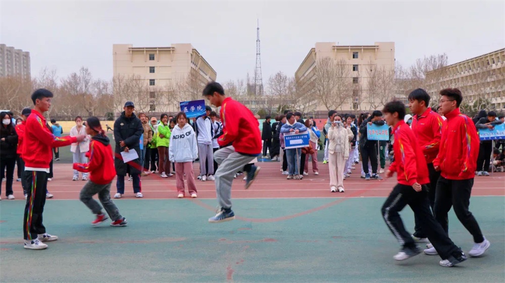 英姿飒爽展风采,青春飞扬正当时。活动开始前,每一位参赛选手都站在相应的位置上蓄势待发,随着裁判一声令下,赛场回荡着绳子落地的声音,选手们聚精会神,随着长绳的摆动跳跃,场外的加油与呐喊激励着每一位选手以最好的状态应对比赛。赛场上跃动的身影青春洋溢,充分展现了传媒学子的青春活力。