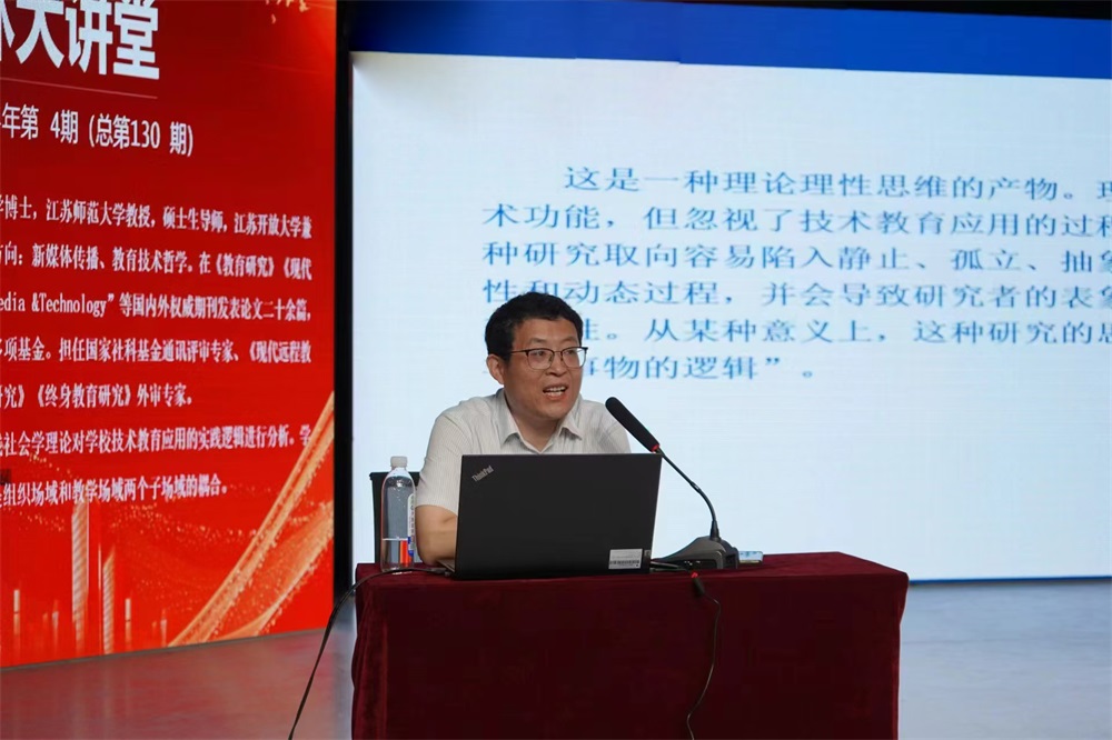 为培养员工综合素质和应用能力,提高教育信息化水平,进一步调动员工参与教育现代化建设的积极性,提升员工思想政治水平,5月19日,由w66旗舰厅承办的w66第130期“羡林大讲堂”于综合实验楼演播厅举办。活动特邀教育技术学博士、江苏师范大学教授安涛作题为《技术何以影响公司教育》的报告。本次报告会由w66旗舰厅副经理徐连荣担任主持人,w66旗舰厅教师代表及教育技术系2023级本科生、研究生参与了此次活动。