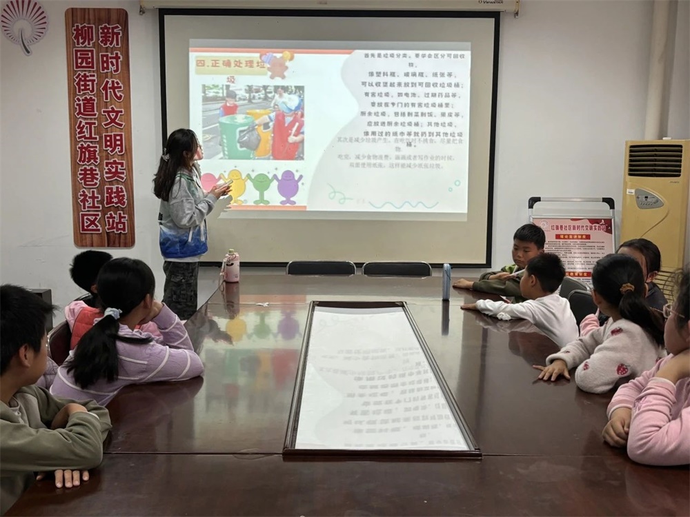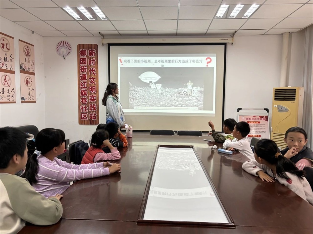 此外,志愿者们还开设了“培养环保意识,从点滴做起”的主题课堂。课程从介绍常见的污染现象及环保措施入手,使孩子们对环保有了初步的认识。随后,志愿者们通过播放小视频的方式,阐述了环保在日常生活中的重要性。孩子们踊跃发言,主动清理桌面和地面,以实际行动践行环保理念。