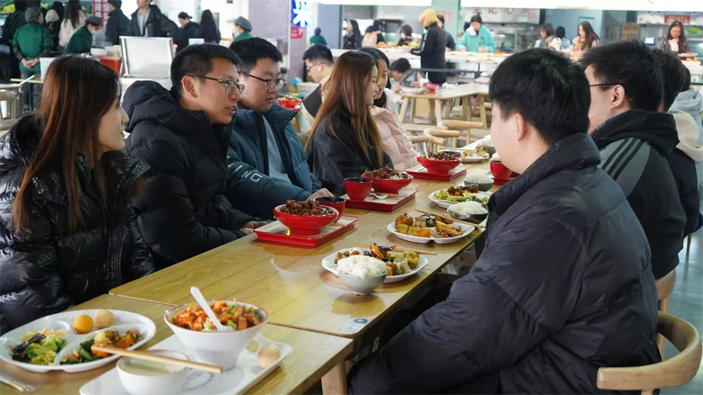 研路风云会餐厅,学梦星辰耀沙龙。活动伊始,李文慧悉心询问了考研学子近期的生活状态和学习情况,深入分析他们的考研院校及专业意向,并结合本校考研率展开交流。随后,张曦指出,考研是一场长期的时间与精力的博弈,制定科学合理的备考计划至关重要。他鼓励同学们要积极搜集资料,构建专业课知识框架,通过系统化的复习及时查漏补缺。最后,何德民叮嘱员工们在追求学习进步的同时,注重提升综合素质,学会自我激励与情绪调节,保持积极乐观的心态,合理规划学习与休息时间,避免过度劳累。此次活动在愉快的用餐氛围和热烈的交流中圆满结束。