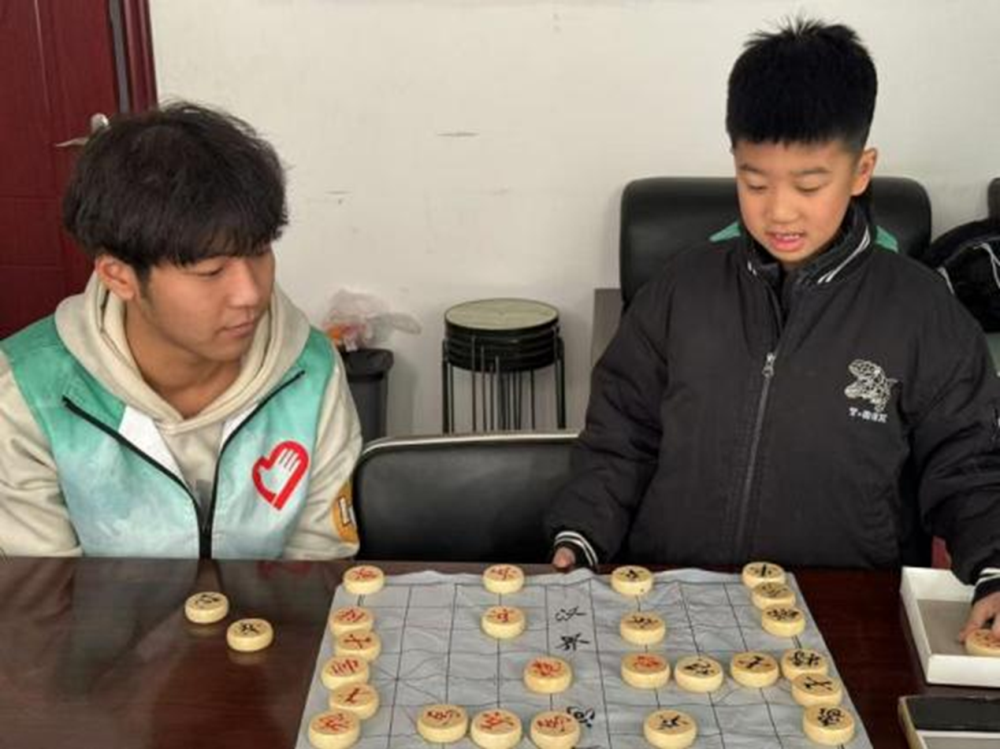 爱心传递肩并肩,志愿服务心相连。本次周末课堂以“一对一”课业辅导为核心,穿插了趣味游戏、知识问答等环节。活动前期,志愿者们提前到达红旗巷社区,对活动教室进行打扫和布置,并精心准备课堂活动,待小朋友们到场后,志愿者们介绍了此次活动的主要内容和注意事项。活动开展期间,志愿者们耐心解答孩子们的疑问,引领他们探索知识的乐趣。课间休息时,志愿者们准备了“我有你没有”的益智小游戏,孩子们踊跃参与,积极动脑。此外,志愿者们还带领孩子们体验了中国象棋、五子棋等丰富多彩的娱乐活动。在游戏过程中,孩子们全神贯注,认真思考每一步棋,不仅有效地锻炼了孩子们的思考能力,还带领他们深刻感受中国传统文化的独特魅力。
