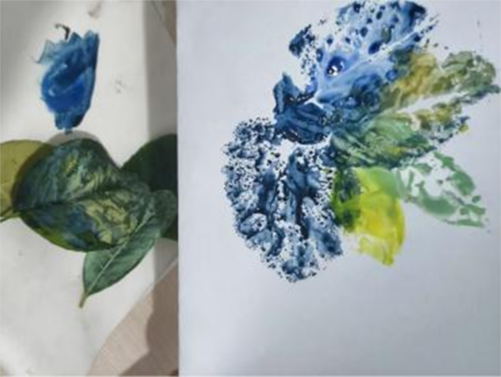 活动筹备阶段,我钻研各类美育知识点,广泛查阅资料,并设计了丰富有趣的示例与互动环节。授课时,小朋友眼中流露出对传统文化的浓厚兴趣,尤其在“山河成画”创作环节,小朋友用树叶拼出飞鸟、游鱼,简单几笔便勾勒出一幅生动的自然画卷。他的想法新颖独特,色彩运用大胆,及从对美育懵懂,到能自信讲述传统技艺及心中的山河故事,令我倍感惊喜。这次经历使我深刻认识到因材施教的重要性,并体会到美育对孩子成长的关键作用。