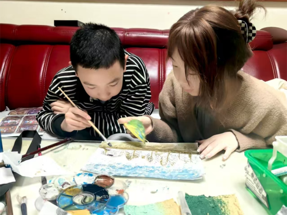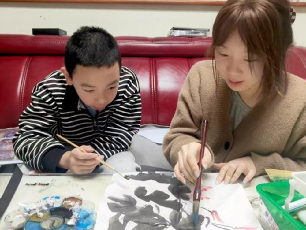 图8 同学与小朋友画国画