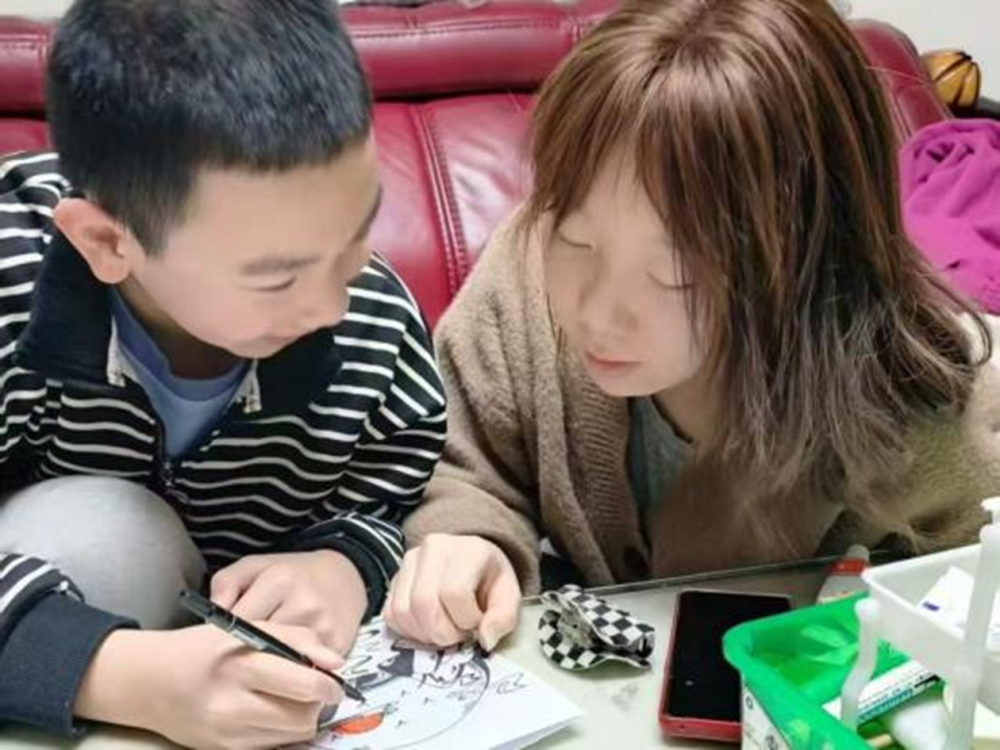 图7 同学与小朋友一同完成作品