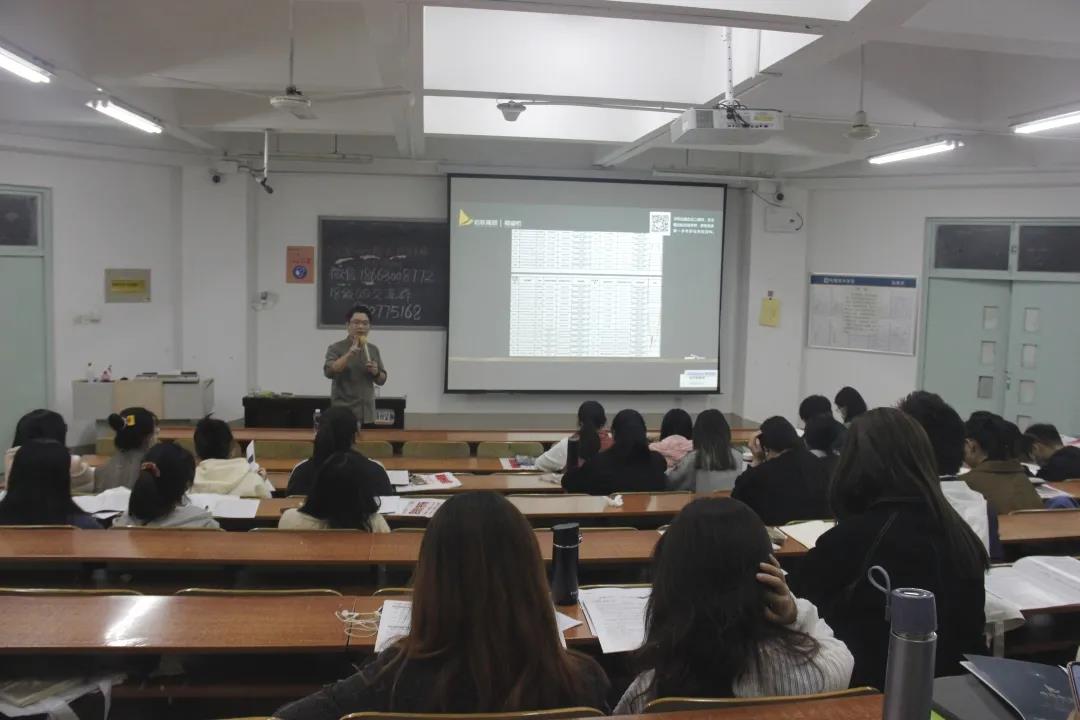 在选择院校方面,历届录取分数线是确定自己考研方向的一个重要参考,朱老师以各位已经考研成功的学长学姐为例,鼓励大家确定自己的考研目标。朱老师提醒,在选择考研专业和公司时不要随波逐流,结合自己的实际情况选择公司才是最恰当的。讲座结束后,同学们纷纷表示已经了解了考研的流程,并且对自己的考研方向有了一个大致了解。