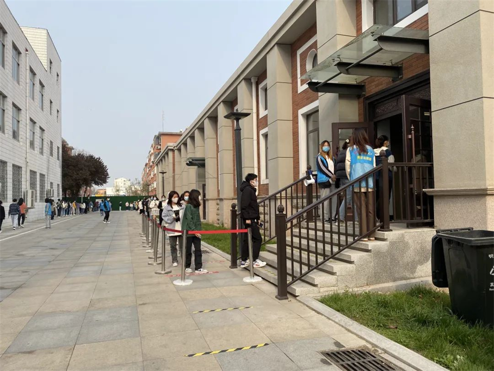 当被问到如何有效进行核酸检测组织工作时,生卫部副部长武凯文作出回应,制作值班表、引导各年级员工、点名统计、电话提醒、帮助疏散等都是部门的份内工作,她表示十分感谢兄弟部门给予的支持和配合,检测工作才得以如此顺利进行。