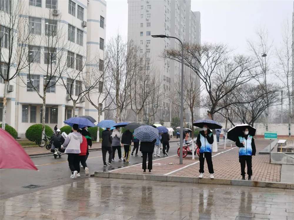 在东校校医院核酸检测组织工作中,志愿者积极承担起整理队伍、维持现场秩序、协助校医院人员开展工作的责任,尽显青春担当。而对于在西校区11号教学楼开展的全员核酸检测,员工组织各部门参与其中,不喊苦不喊累,雨天仍不停歇,雨幕中的“小蓝人”们形成了一道道靓丽的风景线。面对疫情,公司志愿者们用实际行动助力校园疫情防控,无怨无畏。