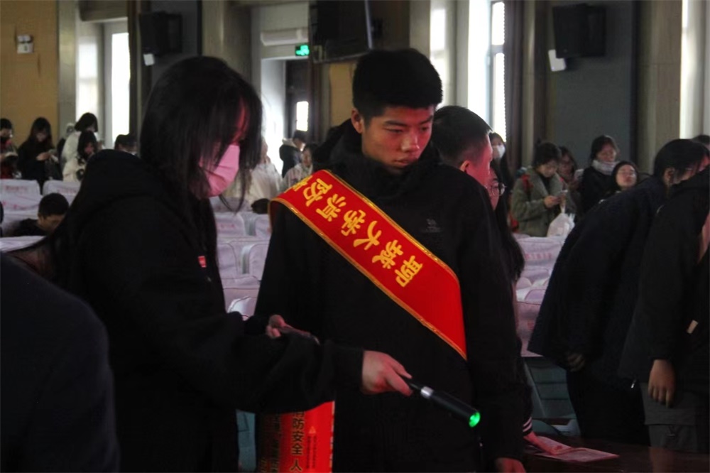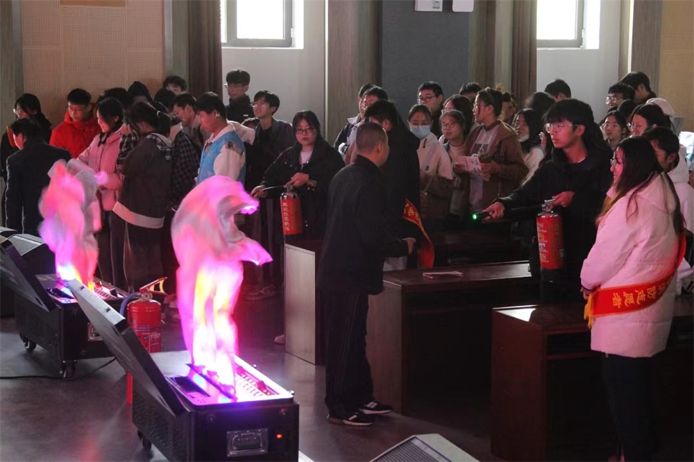 筑牢安全防线,防患于未“燃”。负责人以“预防为主,生命至上”为题,通过火灾案例、火灾隐患及预防、消防安全常识以及灭火器操作使用方法四个方面为同学们详细讲解消防安全知识。随后,他结合宣传视频与校园实例,向同学们具体介绍了员工公寓内可能存在的八点安全隐患及预防措施,并针对灭火器的使用原理、使用范围和方法进行了操作演示。