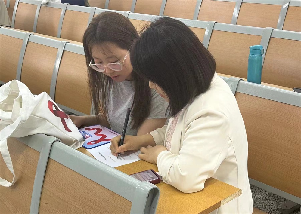 深化健康认识,共筑无艾防线。活动伊始,主办方精心准备了一份关于艾滋病认知与态度的调查问卷,问卷内容涵盖了艾滋病的传播途径、预防措施、社会影响等多个方面,旨在收集参与者对艾滋病的了解程度、态度以及对于相关防控措施的看法。随后,专家围绕什么是艾滋病、艾滋病病毒(HIV)的特点以及艾滋病的传播途径等内容,深入浅出地讲解了艾滋病的相关知识,使同学们对艾滋病有了全面而深刻的了解。专家还通过生动的案例和科学的数据,向同学们展示了艾滋病防控工作的重要性和紧迫性,她强调,预防艾滋病不仅关乎个人健康,更是家人和社会的责任。