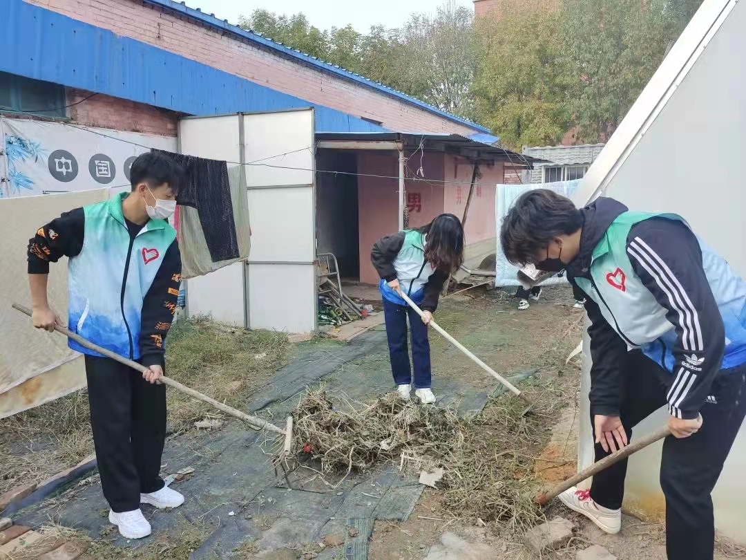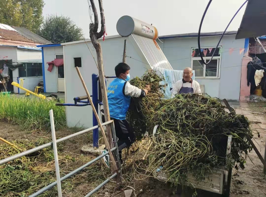 浓浓尊老心,拳拳爱老意。在敬老院工作人员的带领和耐心讲解下,成员们简单分组、明确分工,帮助老人们清除花园中的杂草和碎砖,他们三人成行、两人成列,按照由里至外的顺序仔细清理。