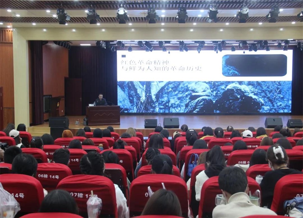 王老师就影片背景、人物塑造、精神内涵及现实意义四个方面作简要阐述,深层剖析心向黎明、舍生取义的共产党人之于中国革命胜利的重要意义,全面解读新时代爱国主义精神和青年任务使命,并呼吁在场学子应把理想抱负融入到实现中华民族伟大复兴的中国梦中,坚持学习书本知识与社会实践相统一,自觉将青春之力、奋斗之志转换为报国之行。