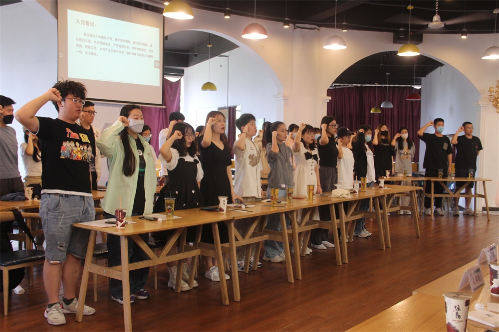 郭峰寄语毕业生时提出,同学们在未来的工作岗位上不要忘记入党初心,应时刻牢记党员身份,积极服务奉献社会;公司永远是同学们最坚强的后盾。最后,参与活动的全体师生集体起立,共同重温入党誓词。