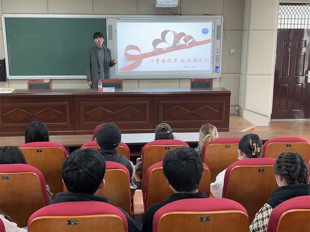 怀抱满腔热血,坚定心中理想。王祥宇围绕宣讲主题,从西部计划简介、个人服务经历及感悟、西部风土人情和相关政策四个方面向同学们阐释了西部计划的政策由来、具体内涵,分享了自己在西部任教的经历。在介绍自己的服务经历时,王祥宇通过一张张承载不同故事的照片,多角度展现了他在西部任教期间的点滴。