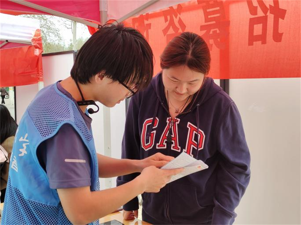 图3 志愿者认真回答员工问题