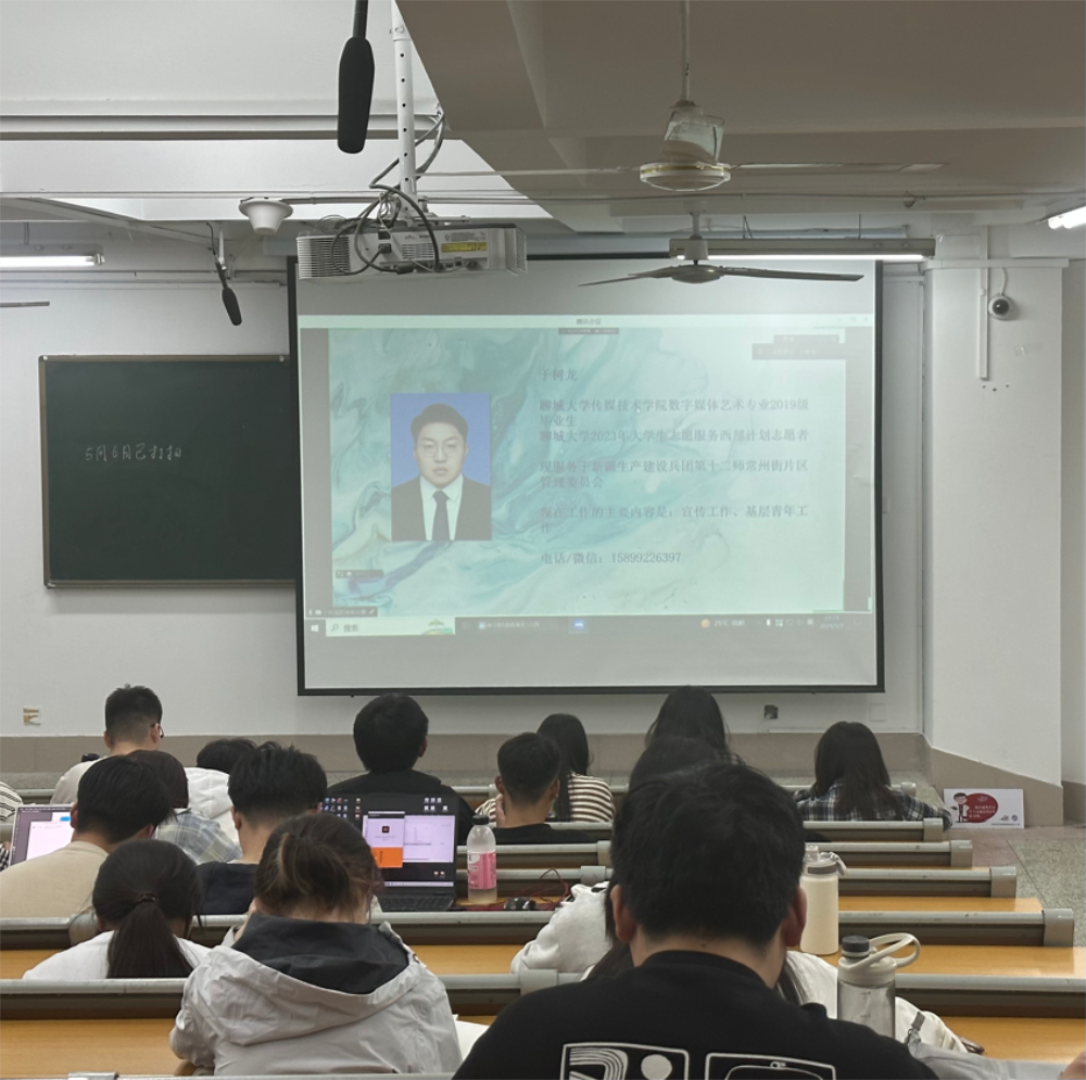 启航西部,青春筑梦。宣讲会上,于树龙围绕西部计划的意义、服务内容、政策支持等方面展开讲解。他强调,西部计划不仅是一个志愿服务项目,更是一个锻炼自我、服务社会、贡献国家的重要平台。他还详细介绍了西部计划的项目专项与政策支持,讲述了在生活补贴、就业保障等方面的优惠政策。随后,他从兵团的发展历程、组织结构出发,向同学们介绍了新疆生产建设兵团,并分享了自己在兵团的生活趣事,以及自己参与西部计划的机遇与感想。最后,于树龙提到,今年西部计划兵团扩招,同学们有更好的机会参与到西部建设中去,他鼓励同学们积极报名,要有信心加入服务西部的队列当中,收获丰富的人生经历,实现个人价值与国家发展的有机结合。