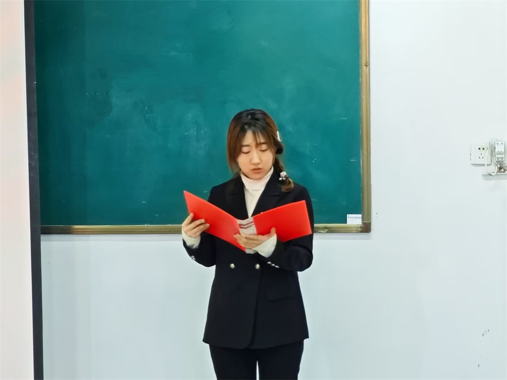 宣誓礼后,新团员代表姚佳怡、优秀团员代表蔡易辰、党员代表张兆涵依次上台发言。姚佳怡以新团员的视角出发,表示将秉持自律精神,全面提升自我,为团组织注入全新的活力。蔡易辰则强调了共青团员作为青年先锋的重要作用,鼓励新团员们肩负起新时代的责任,引领青年群体共同进步。张兆涵以党员代表的身份呼吁新团员们珍惜荣誉,不忘初心,继承和发扬党的优良传统,为实现中华民族的伟大复兴而不懈努力。最后,仪式在中国共产主义青年团团歌的奏唱中落下帷幕。