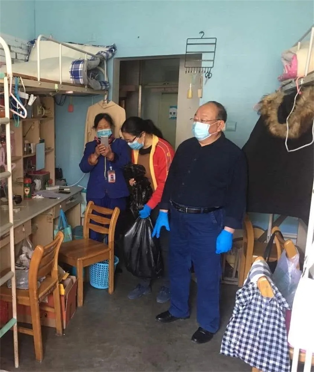 检查过程中,辅导员和班主任对员工宿舍各个角落都进行了细致的隐患排查工作,并在检查过程中将发现的问题及时进行汇总解决。由于长期的宿舍封闭,很多宿舍中的被褥出现受潮状况,一些假期前未收放好的食品也发生了霉变。