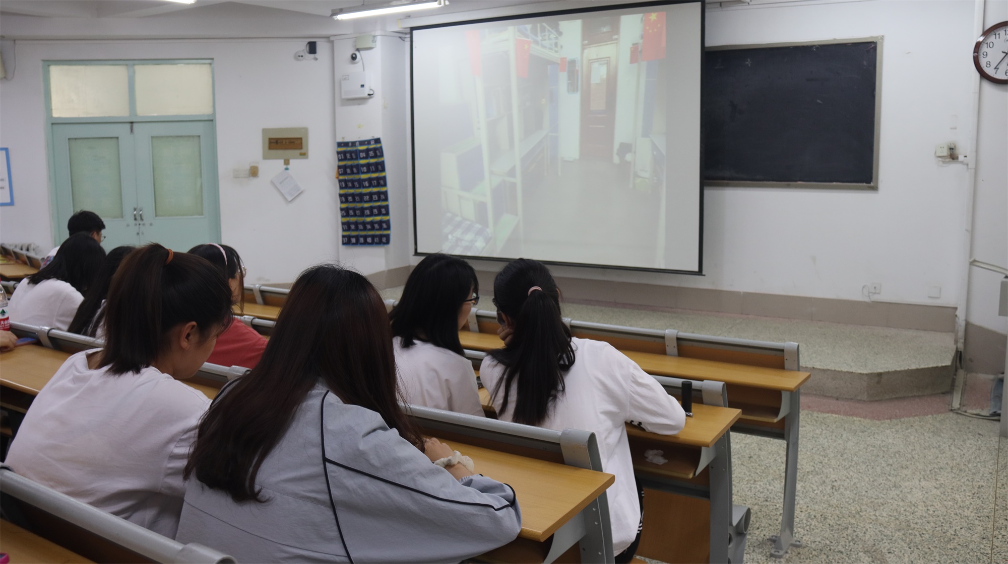 图2 5月27日,主持人张馨月同学讲解宿舍情况