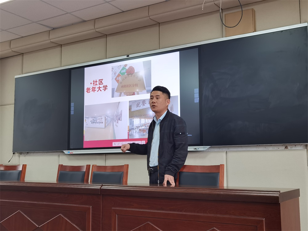 理论学习长本领,实践担当出新知。此次宣讲活动共分为两个阶段,第一阶段,于兴奇通过PPT、视频等形式,图文并茂地向同学们呈现了向阳社区的“老少同乐会,携手共幸福”志愿服务品牌项目的发展历程,重点介绍了项目“日间照料家居屋”“老年大学”“水城育家”“幸福食堂”等建设情况。该项目是社区党委主动谋划,“党委领导、社区操作、社会参与”的“为老为小”服务品牌,曾获得“山东省科普实践基地”“省级文明社区”“东昌府区‘五为’文明实践志愿服务示范社区”等多项荣誉称号。