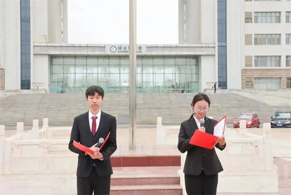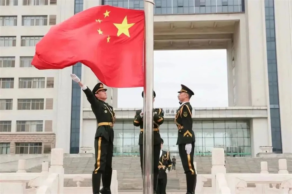 清晨七时整,升旗仪式正式开始,伴随着嘹亮激昂的口号声,国旗护卫队的队员们昂首挺胸,迈着铿锵有力的步伐,高举国旗走上升旗台。国歌奏起,升旗手振臂一挥,五星红旗冉冉升起,全体师生庄严肃立,齐唱国歌,面向国旗行注目礼。