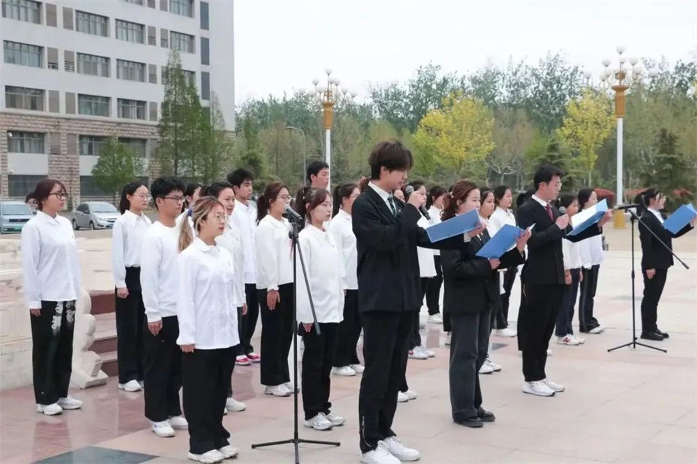 w66旗舰厅朗诵团列队整齐,齐声朗诵诗歌《历史不会忘记》。诗歌中充满了当代青年员工对革命先烈的纪念缅怀、崇高敬意,他们用饱含深情的朗诵展现了w66青年学子昂扬向上的精神风貌,激励着在场员工铭记历史、奋发图强。
