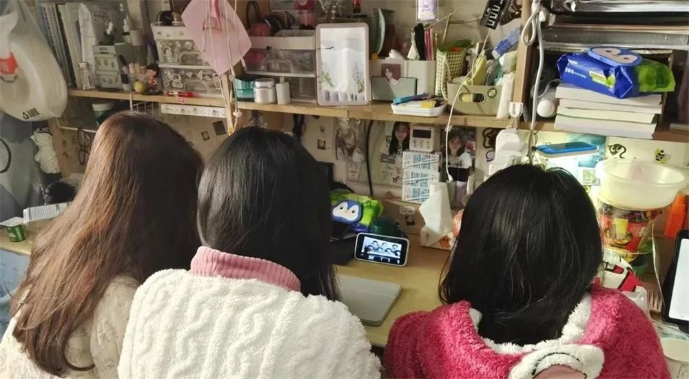 图5 同学们认真观看直播