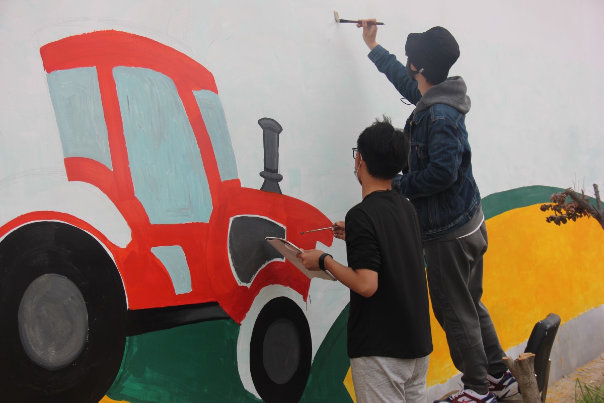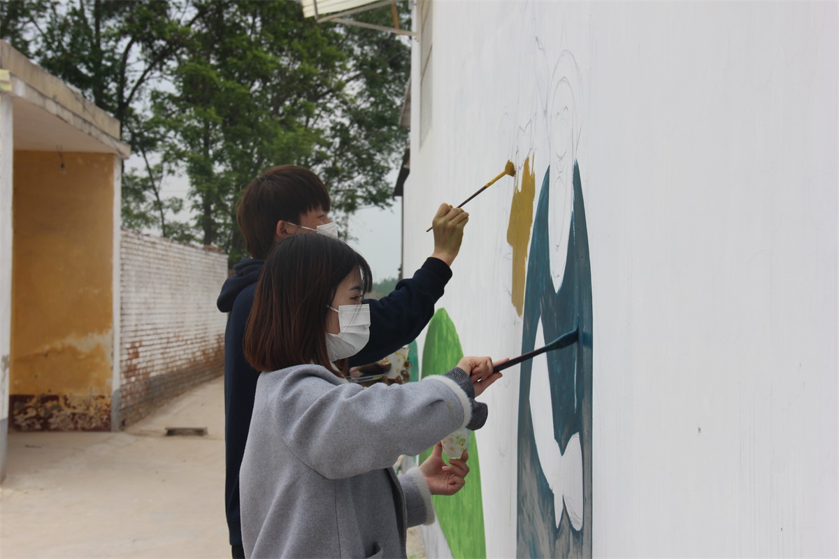 同学们按照既定图画,小笔勾勒、大笔挥毫,起形、调色、测绘、涂色,每一个步骤都一丝不苟、精益求精,力致于将乡村新面貌通过手中的画笔展现在村民的视野里。过程中,安楼村村委会成员带领魏建国书记一览乡村景观并给忙碌的同学们带去鼓励与关怀,他们给予同学们高度认可。同学们纷纷表示,此次乡村墙绘志愿服务活动充实而意义颇丰,既丰富了员工们的课余生活,又促进了美丽乡村、复兴乡村的建设。