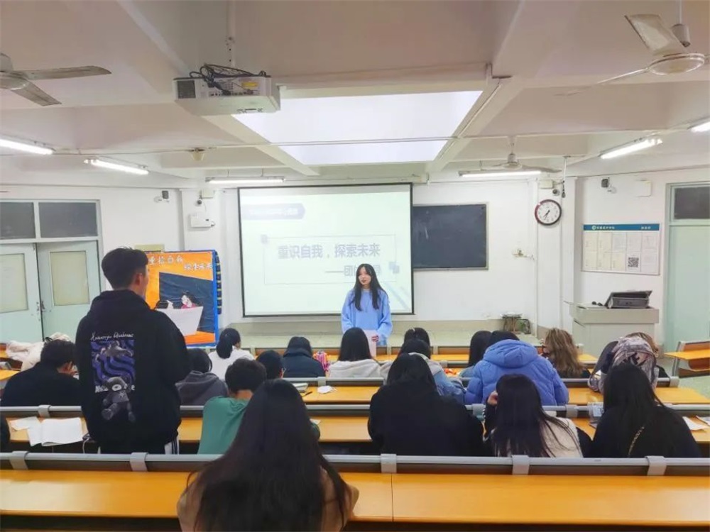 回顾自我,展望未来。活动伊始,王媛昕以同学们喜闻乐见的方式让同学们用三个词语形容自己。在自我思考和自我认知中寻找自己的优势所在,激发潜在能力,让同学们认识到自己内心的所需所感,从而激励自己朝着理想的目标不断努力奋进。王媛昕创设现实情境,让同学们于白纸上画出心中的自己,并掩去名字让大家互相猜测画上所对应的同学。同学们认真思考、脑洞大开,根据所抽取的角色卡片编撰故事,在寓教于乐中充分认识自我。