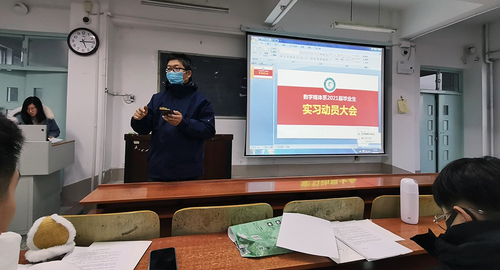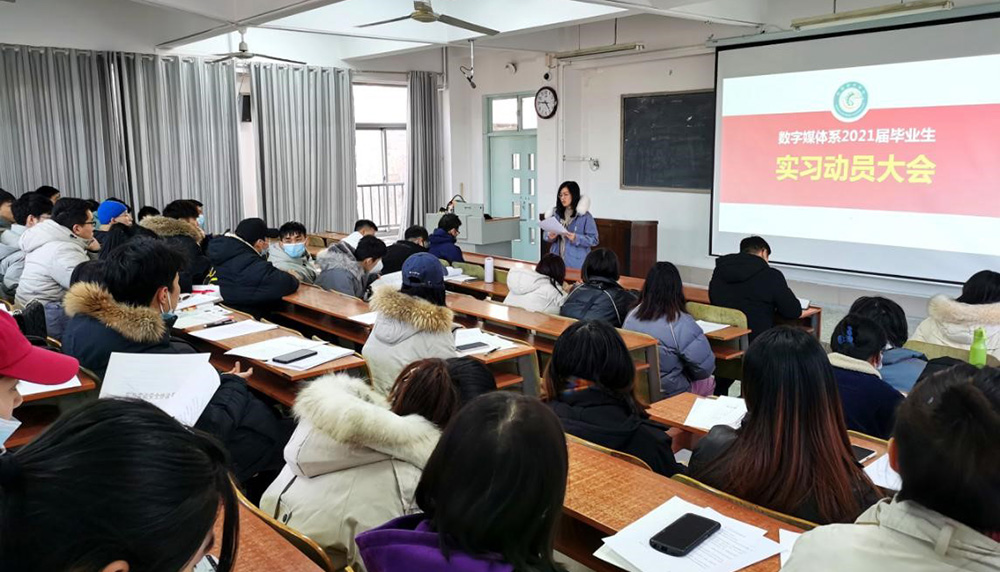 会议伊始,系主任高凤燕向大家宣读数字媒体系毕业实习管理办法,并从实习的组织管理、过程管理、评价管理三个方面进行详细解读,明确了实习时间、实习形式、实习单位审核办法以及如何保障实习权益。对几家重点合作的实习单位进行了介绍,鼓励大家拓宽视野,转变就业观念,关注行业动态。