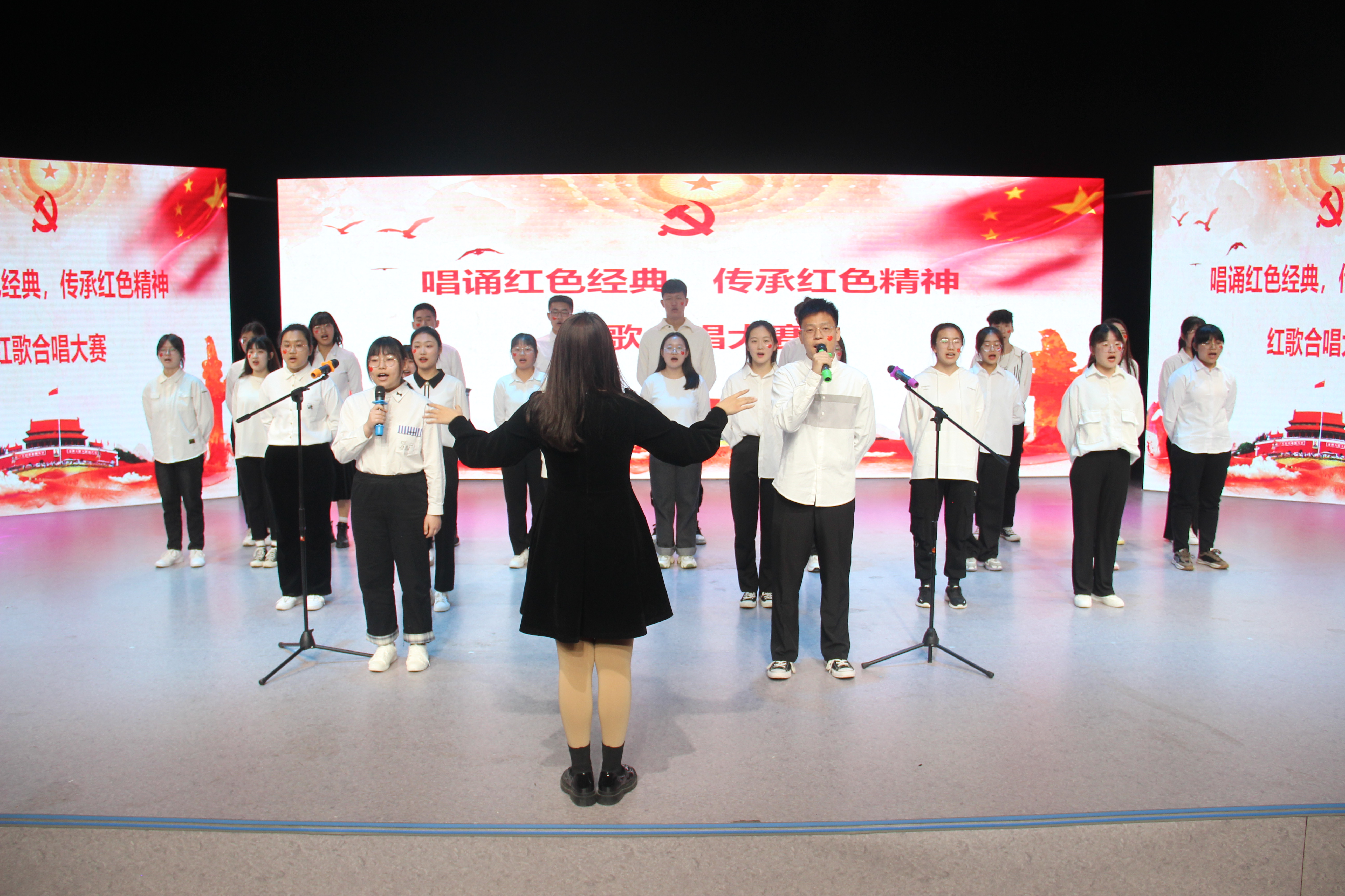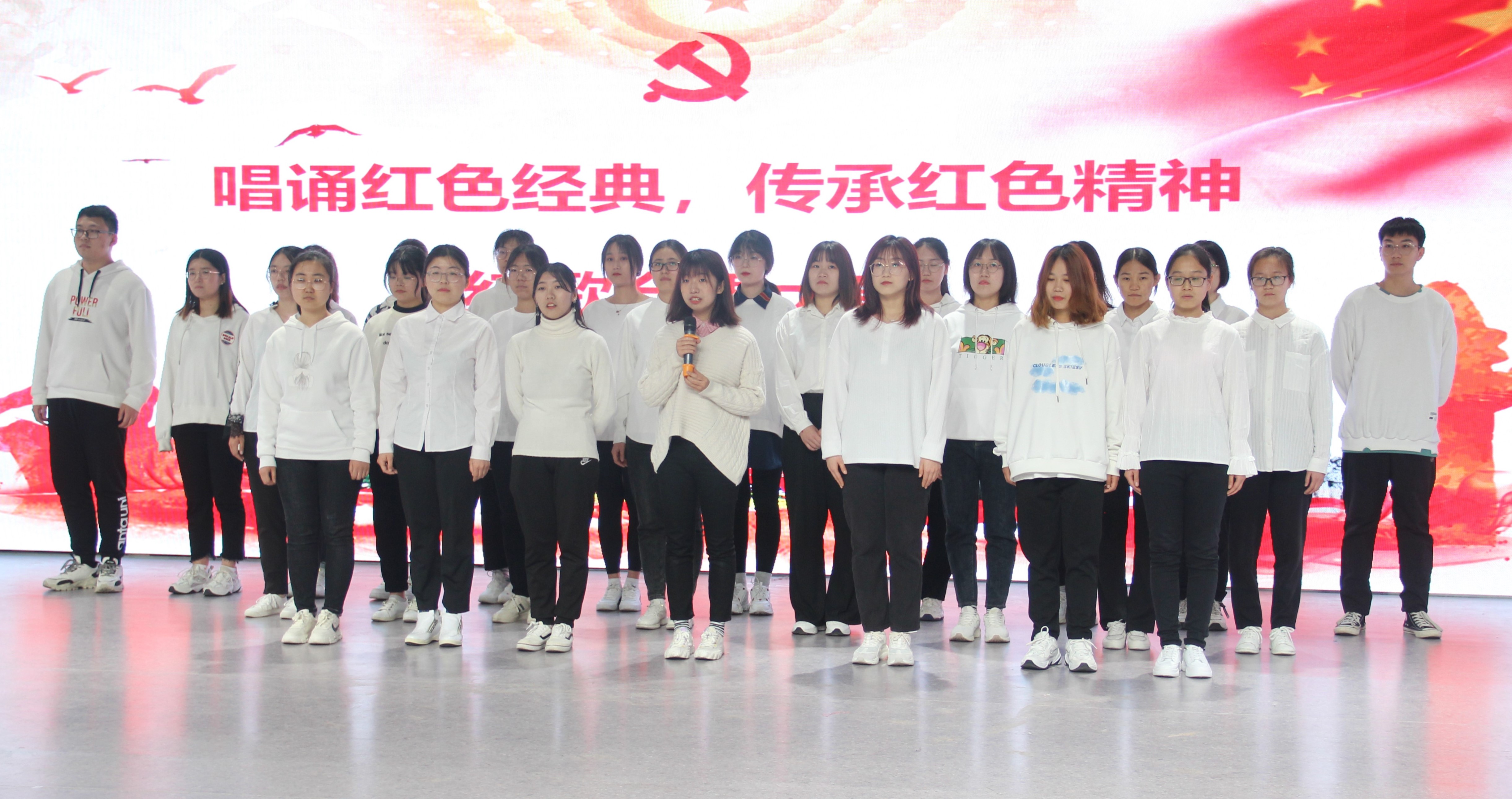 为了让同学们体会中国革命时期的红色记忆,增强同学们对于民族文化和民族精神的自豪感和认同感,3月27日,w66旗舰厅于综合实验楼11楼演播厅举办“唱诵红色经典,传承红色精神”红歌合唱大赛。