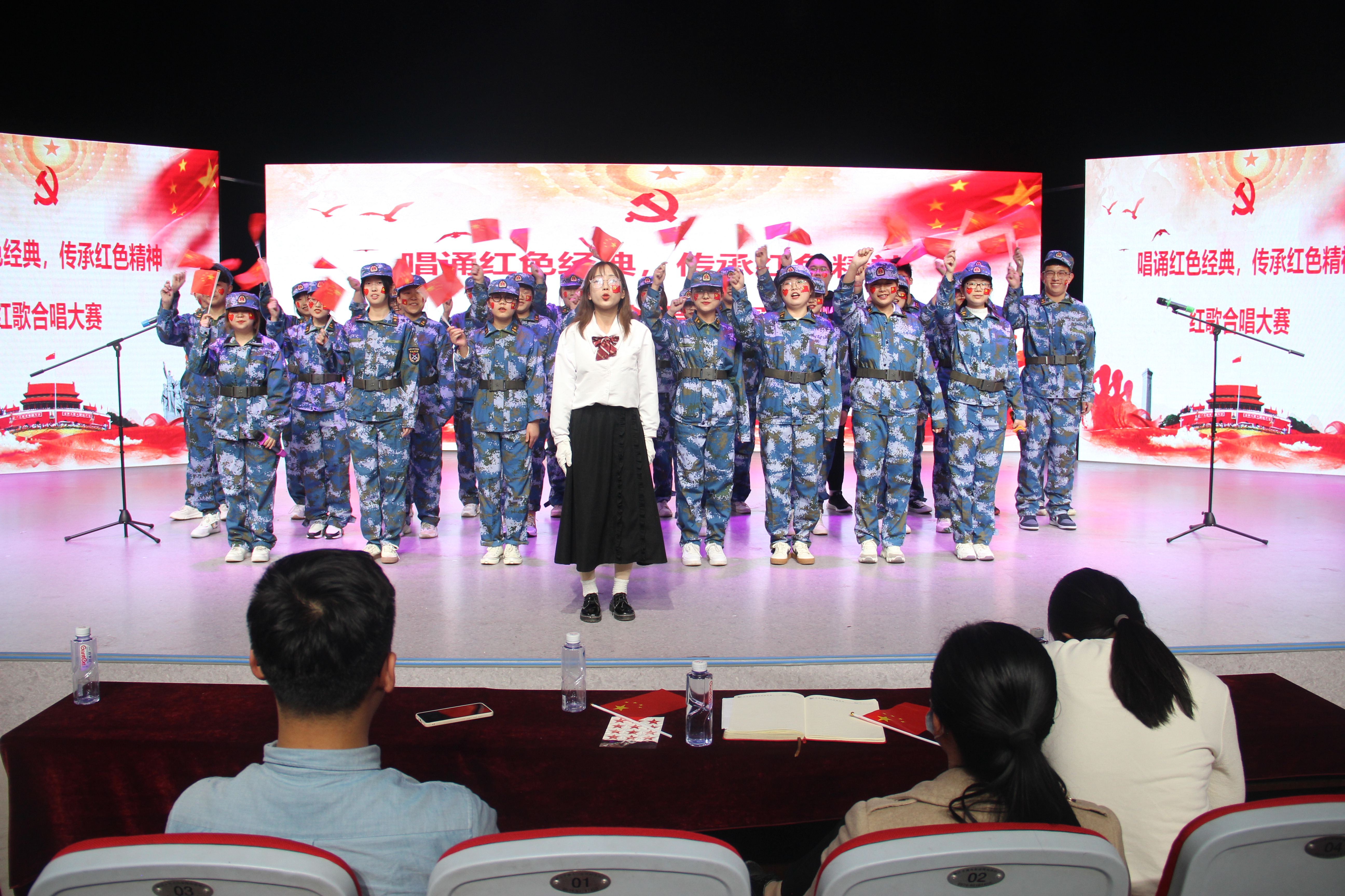 2020级班级间竞争激烈,课余排练时,各班在积极练习歌曲、对歌曲进行降调处理、组织队形、统一服装、创新花样等方面都下了很多功夫,最终呈现出来的效果也获得了老师们和评委们的一致赞许。