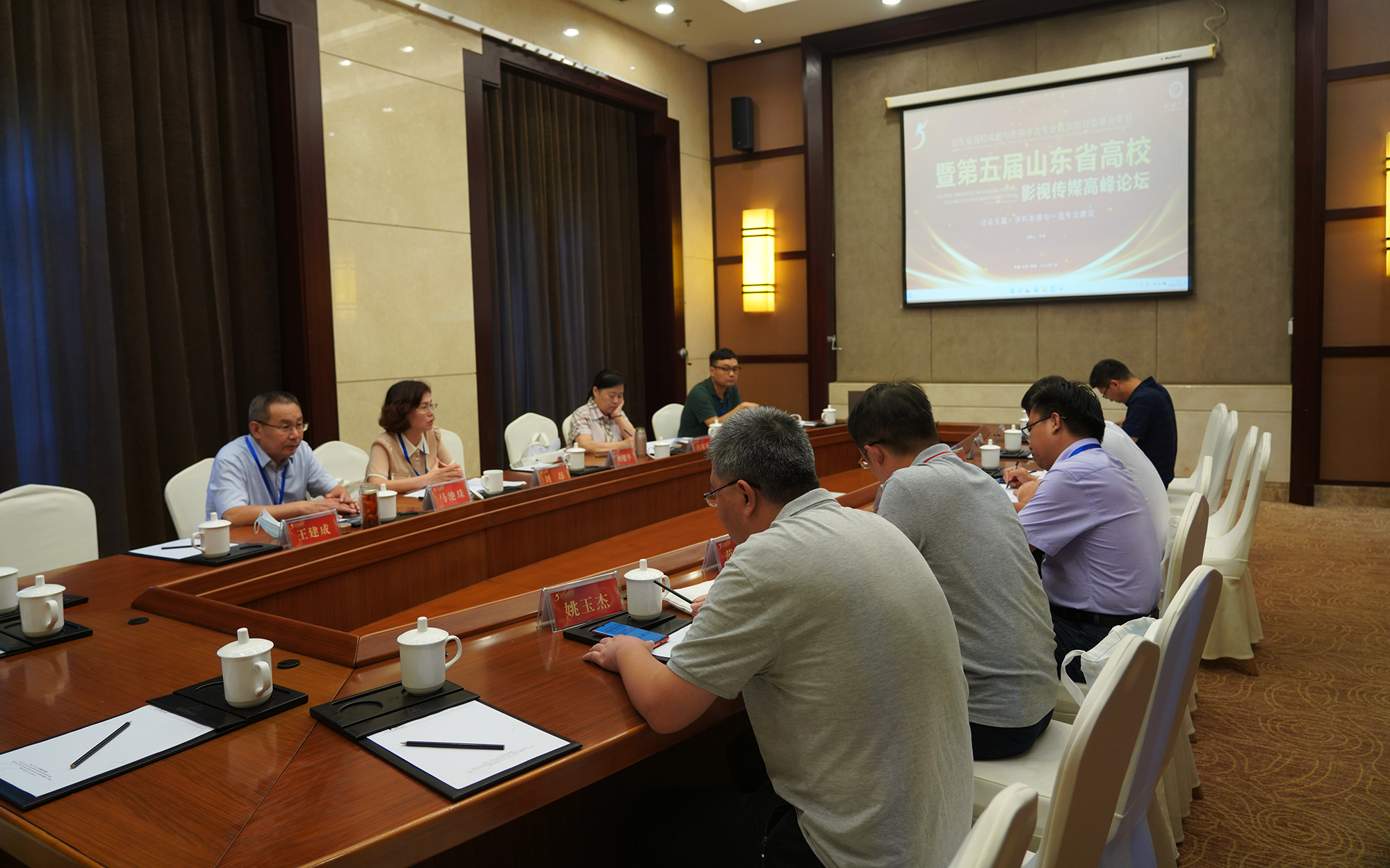 7月29日下午,山东省高校戏剧与影视学类专业指导委员会第二次会议扩大会议召开,省教指委委员、传媒类公司经理、系主任参会。会议由教指委主任委员马池珠教授主持,教育部高校戏剧与影视学类专业教学指导委员会周星主任、张燕秘书长传达了教育部戏剧与影视学教指委相关精神,参会代表讨论了山东省高校影视传媒联盟与山东省传媒教育专家指导委员会整合事宜,并就如何发挥好教指委作用进行了深入交流。