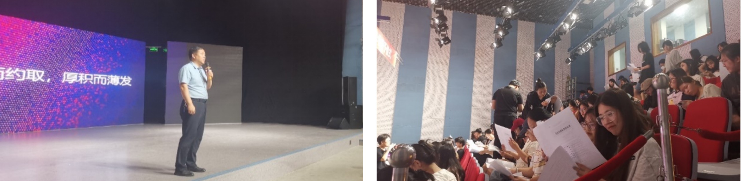 系部提前对考察活动的组织实施进行周密部署,对考察路线进行详细论证,并于9月18日上午在综合实验楼演播大厅专门召开考察说明会,明确课程目标、考察内容与任务要求,同时进行安全教育,强化员工外出安全意识。郭峰经理结合黄河重大国家战略特别强调了本次考察的意义,鼓励同学们要以博学、审问、慎思、明辨、笃行的态度,深入挖掘黄河文化蕴含的时代价值,在毕业创作中“讲好黄河故事”。