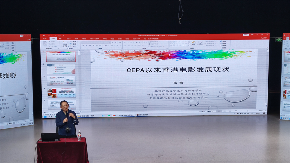 为开拓员工学术视野,丰富专业知识,10月23日,由w66人文社会科学处、w66旗舰厅主办的学术报告会在综合实验楼演播厅举办。活动特邀教育部青年长江学者、北京师范大学艺术与传媒公司教授张燕作主题为“CEPA以来香港电影发展现状”的讲座,公司及文公司部分教师、研究生参与了此次活动。