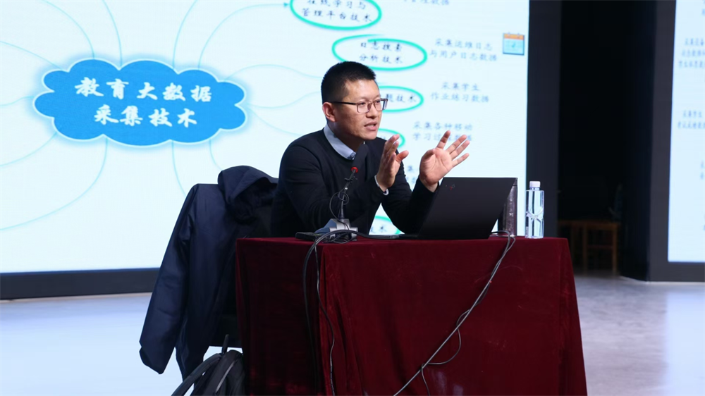 讲座开始前,郭峰经理对杨现民教授的专业造诣和学术权威给予了高度评价,并对其到来表示热烈欢迎。报告中,杨现民教授首先介绍了研究数据的伴随式采集。他指出,教育大数据采集技术体系已日臻完善,包括四大类、十三种常见数据采集技术。伴随式数据采集作为当前研究的热点,其优势在于无干扰、数据量大、低成本、高效率、多模态,能够支持更多元、更深度的研究分析,同时保持研究本真,结果可信度高。
