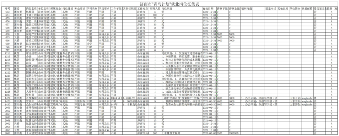 按照团省委"青鸟计划"就业服务季暨"青鸟计划 优选山东"2021云招聘活动总体安排,济宁市县两级团组织广泛对接科技、人力资源社会保障、国资监管、卫生、金融监管等部门和产业园区、科技孵化器,多渠道挖掘优质岗位,对接用人单位参加"青鸟计划 就选济宁"云招聘活动,帮助青年学子、青年人才回济就业创业。
